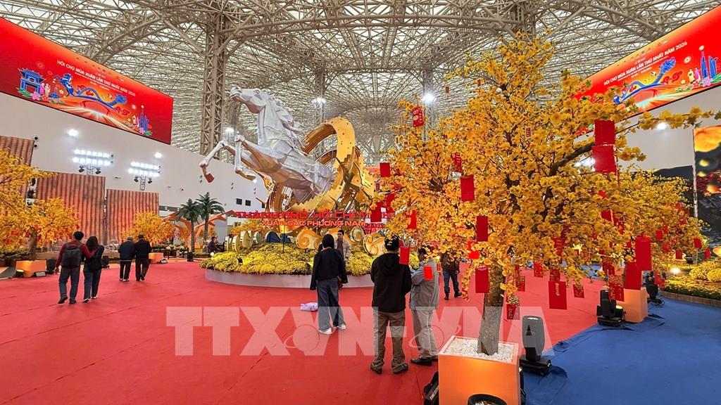 Đông đảo khách tham quan chụp ảnh với mô hình ngựa bạc – linh vật của năm Bình Ngọ tại phân khu “Sắc xuân phương Nam” của Thành phố Hồ Chí Minh. Ảnh: Ngọc Bích – TTXVN