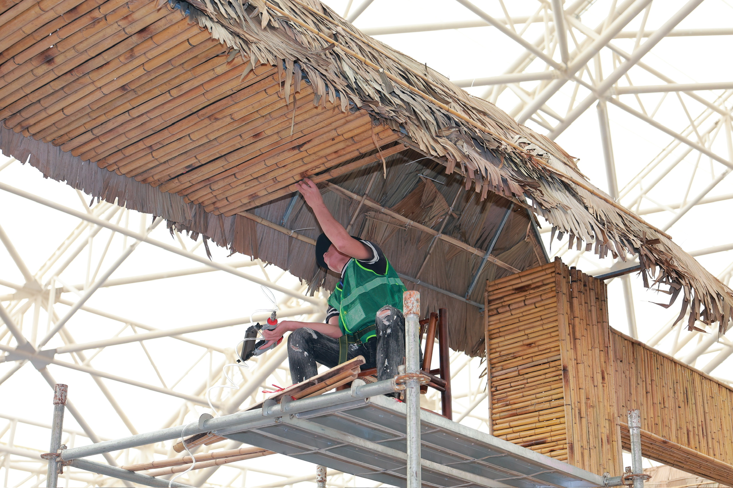 Đầu giờ chiều 1/2, ghi nhận tại khu vực tổ chức Hội chợ Mùa Xuân lần thứ nhất năm 2026 cho thấy không khí thi công, hoàn thiện các hạng mục đang được đẩy nhanh hết sức có thể.