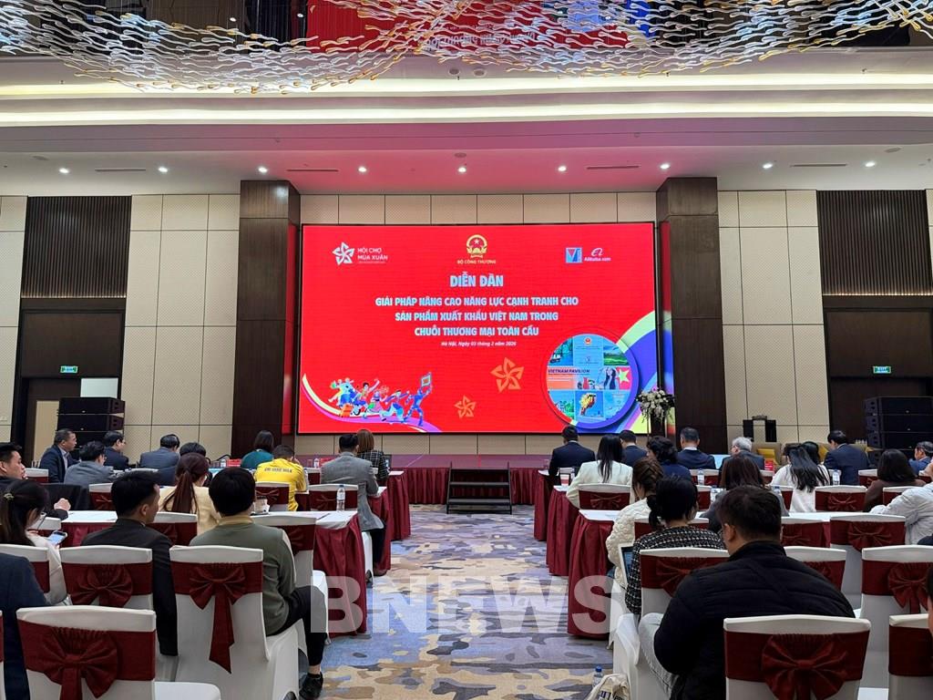 Diễn đàn “Giải pháp nâng cao năng lực cạnh tranh cho sản phẩm xuất khẩu Việt Nam trong chuỗi thương mại toàn cầu”. Ảnh: Minh Trang/Bnews/vnanet.vn