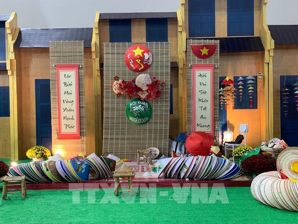 Không gian trưng bày của Nón làng Chuông (Hà Nội) tại Hội chợ Mùa Xuân 2026. Ảnh: Hạnh Quyên - TTXVN