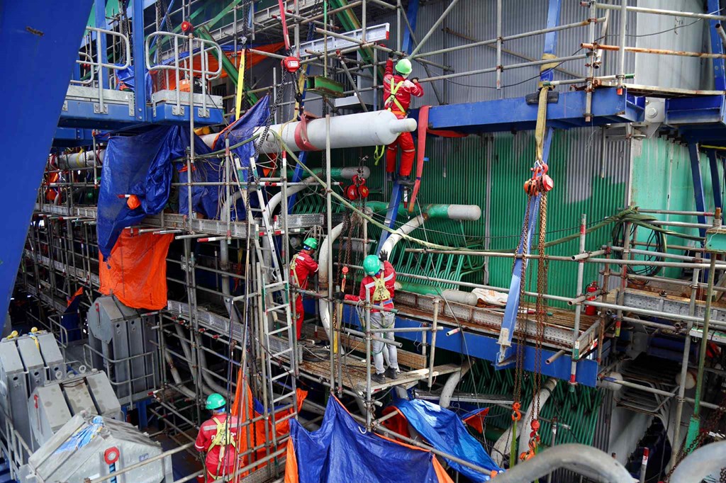 “Hiện khu vực lò hơi, thuộc gói T05, đã đạt 30% khối lượng, vượt 5% kế hoạch. Chúng tôi đang nỗ lực vượt tiến độ, quyết tâm đưa dự án về đích đúng cam kết,” ông Tuấn nói.