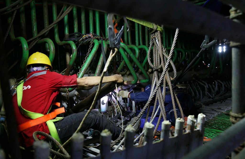 Các Công nhân tham gia hàn các đường ống trong điều kiện thiếu ánh sáng. Ảnh: Thùy Dương/Bnews/vnanet.vn