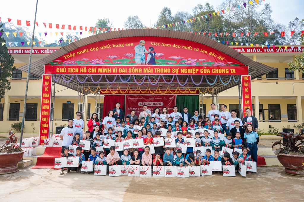 Đội ngũ Home Credit và các đối tác tại Lễ khánh thành lớp học mới tại trường Phổ thông Dân tộc bán trú Tiểu học và THCS Tân Lập (Điện Biên)