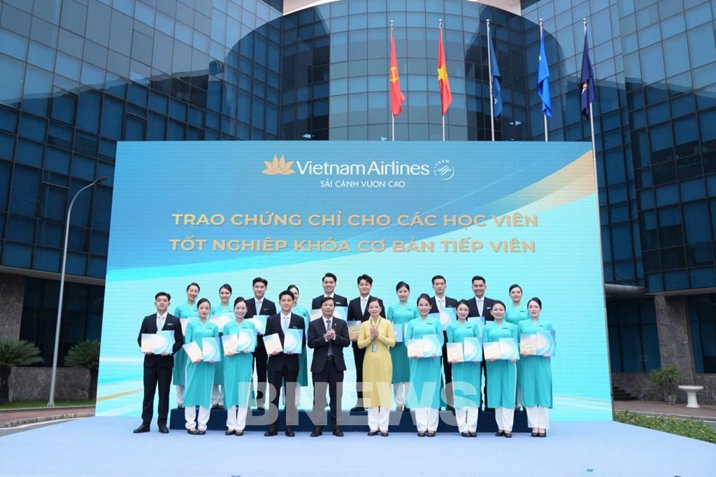 Một điểm nhấn trong chương trình là lễ trao chứng chỉ tốt nghiệp khóa tiếp viên cơ bản, thể hiện cam kết của Vietnam Airlines trong đào tạo nguồn nhân lực chất lượng cao.
