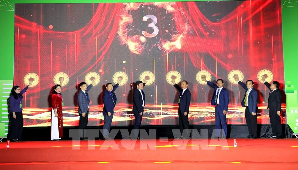 Các đại biểu thực hiện nghi thức khai mạc hội chợ. Ảnh: Quang Cường – TTXVN