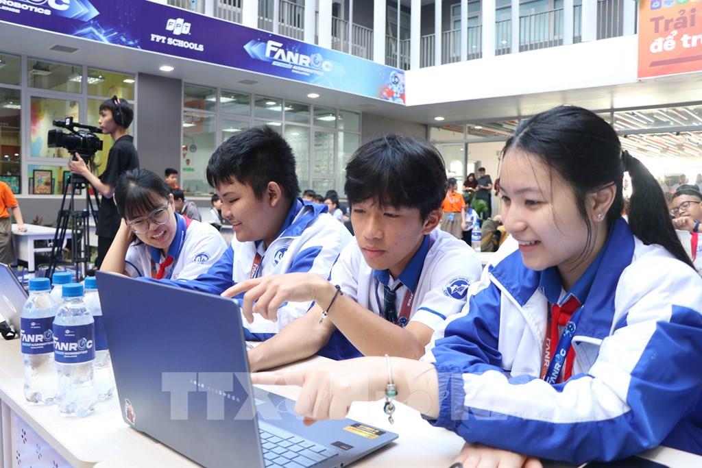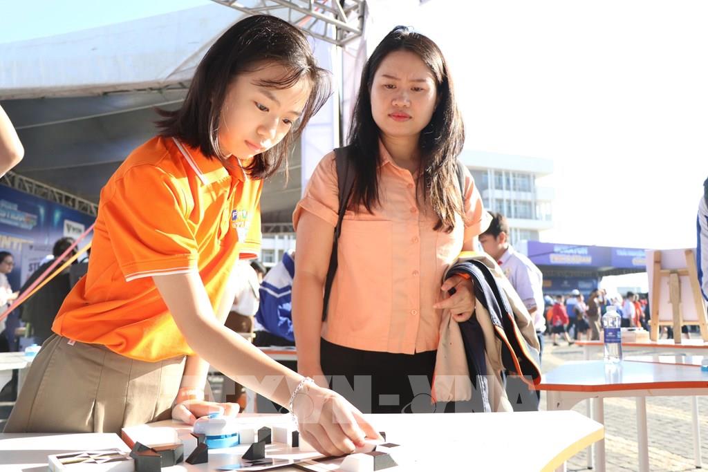 Các gian hàng trải nghiệm STEM – AI – Robotics tại ngày hội. Ảnh: Mai Trang - TTXVN