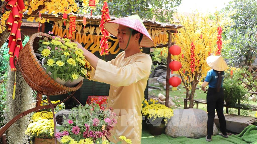 Trang trí đón Tết phục vụ du khách. Ảnh: Nguyễn Hằng - TTXVN