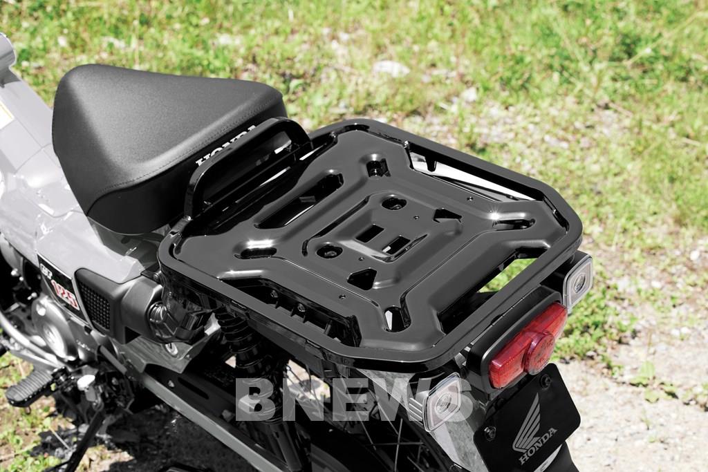 Một điểm cộng lớn của CT125 là khả năng chở đồ linh hoạt. Xe được trang bị giá chở hàng phía sau kích thước lớn (409mm x 477mm) cùng bốn móc treo tiện dụng, cho phép người dùng dễ dàng mang theo hành lý hoặc dụng cụ dã ngoại. Cấu trúc gầm cao và bộ lốp gai địa hình tăng khả năng bám đường, giúp xe vận hành ổn định ngay cả trên các cung đường đồi núi, sỏi đá.