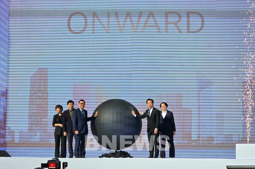 Các đại biểu và Honda Việt Nam thực hiện nghi thức khai mạc sự kiện “ONWARD - Mở lối tương lai xanh”. Ảnh: Văn Xuyên/BNEWS/TTXVN