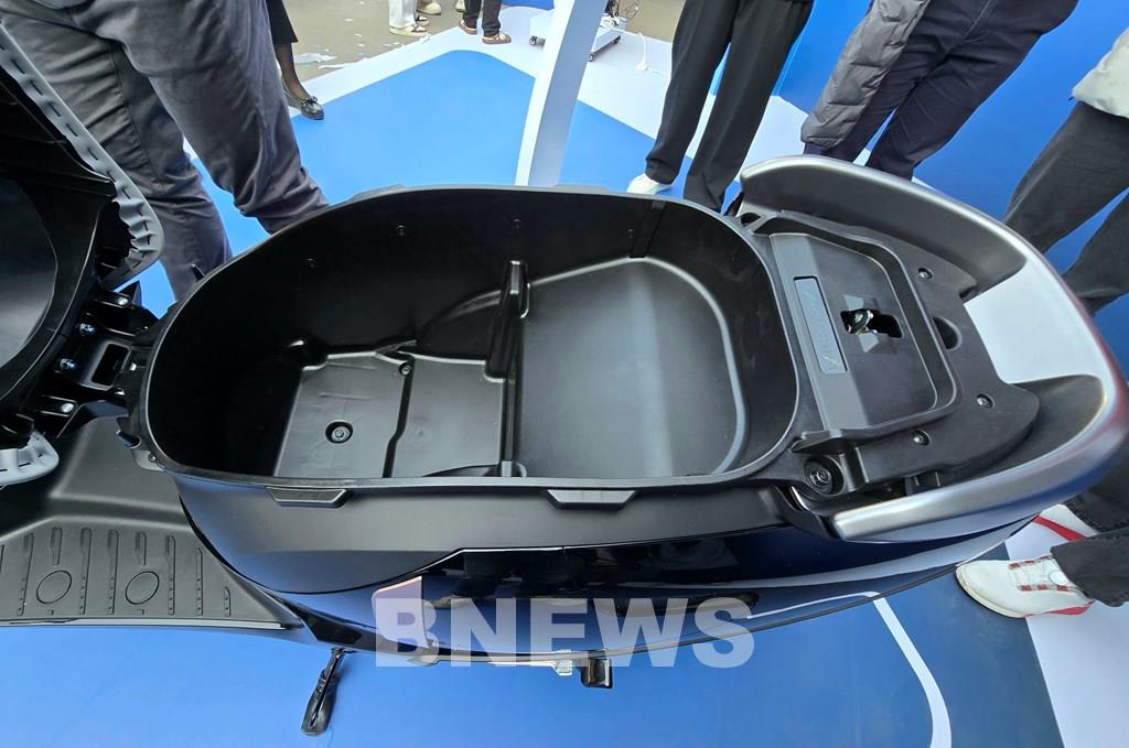 Pin Honda UC3 được bố trí cố định dưới sàn xe giúp không gian cốp rộng rãi với dung tích lên tới 26 lít, đảm bảo sự tiện lợi trong sinh hoạt đô thị thường ngày. Ảnh: Văn Xuyên/BNEWS/TTXVN