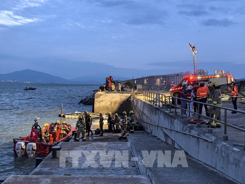 Lực lượng cứu trợ khẩn cấp làm nhiệm vụ tại hiện trường vụ máy bay chở hàng trượt khỏi đường băng và lao một phần xuống biển ở sân bay quốc tế Hong Kong, Trung Quốc ngày 20/10/2025. Ảnh: THX/TTXVN