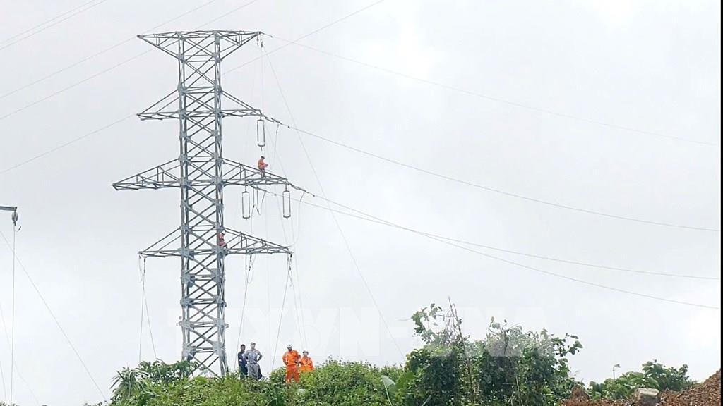 Nhân viên điện lực nỗ lực khắc phục sự cố điện để sớm cấp điện lại cho người dân miền Trung. Ảnh: TTXVN phát