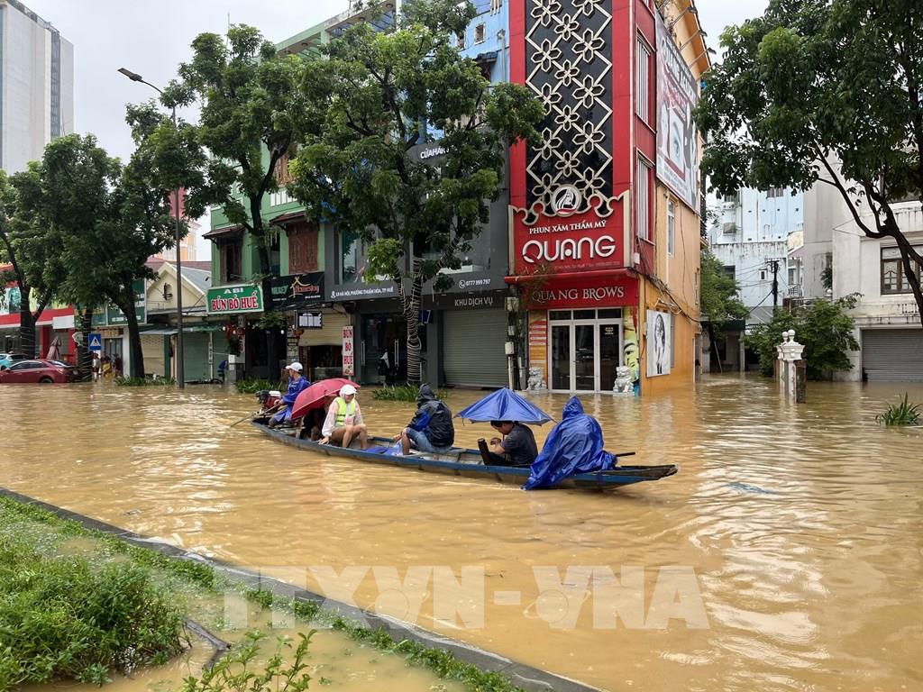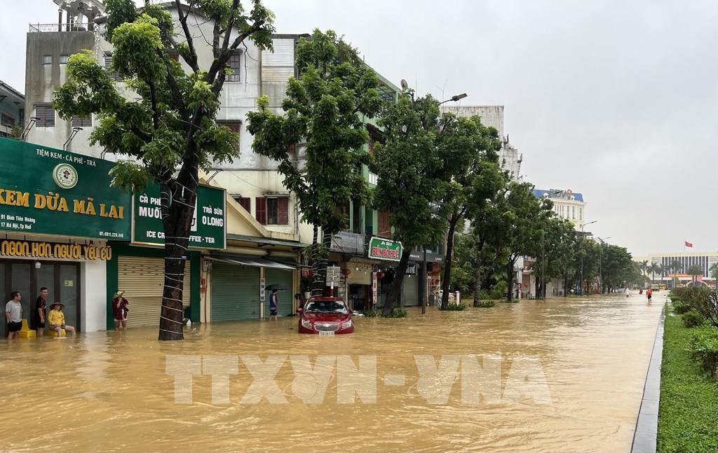 Nhiều tuyến đường chính vẫn còn ngập sâu. Ảnh: Văn Dũng-TTXVN