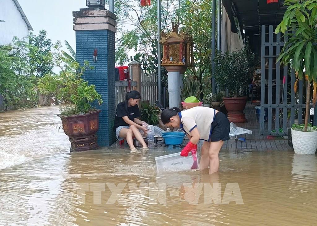 Người dân Huế tất bật dọn dẹp nhà cửa sau lũ. Ảnh: Hải Âu-TTXVN