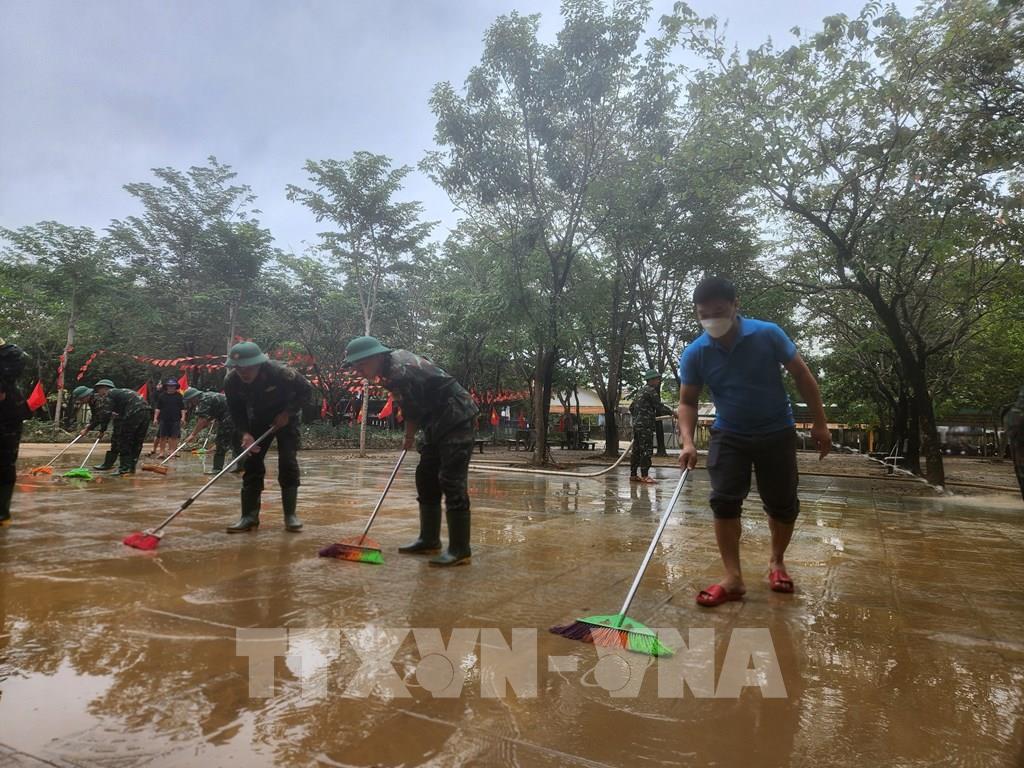 Ngày 4/11, ngay khi nước rút, các lực lượng quân đội, công nhân vệ sinh môi trường cùng thầy cô giáo, dân quân địa phương đã khẩn trương dọn dẹp bùn đất, rác thải, khôi phục cảnh quan đô thị và môi trường học tập, sớm đưa học sinh trở lại trường học trong điều kiện an toàn.
