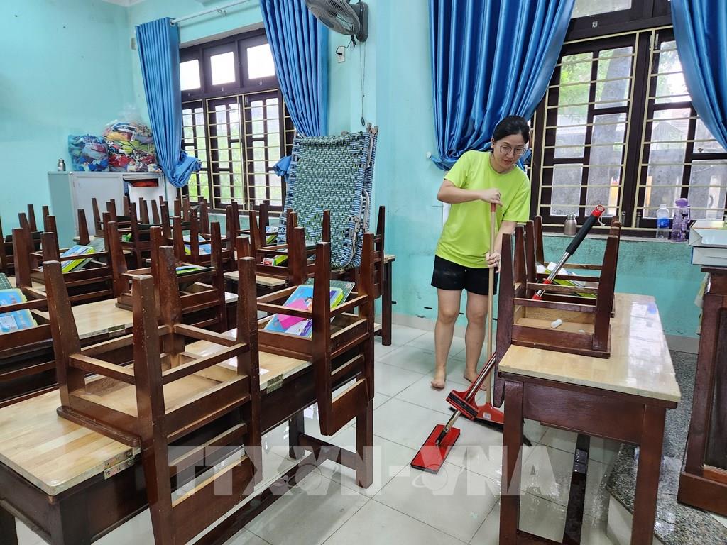Thầy Nguyễn Thế Sinh, Hiệu trưởng trường Tiểu học Vỹ Dạ cho biết, theo phương châm "nước rút đến đâu, vệ sinh đến đó", toàn bộ giáo viên, nhân viên được huy động dọn dẹp. Nhờ sự hỗ trợ của Trung đoàn 6, dân quân phường Vỹ Dạ và thầy cô các trường lân cận, khối lượng công việc được giảm đáng kể, hy vọng chỉ ít ngày nữa, thầy trò sẽ sớm trở lại trường an toàn.