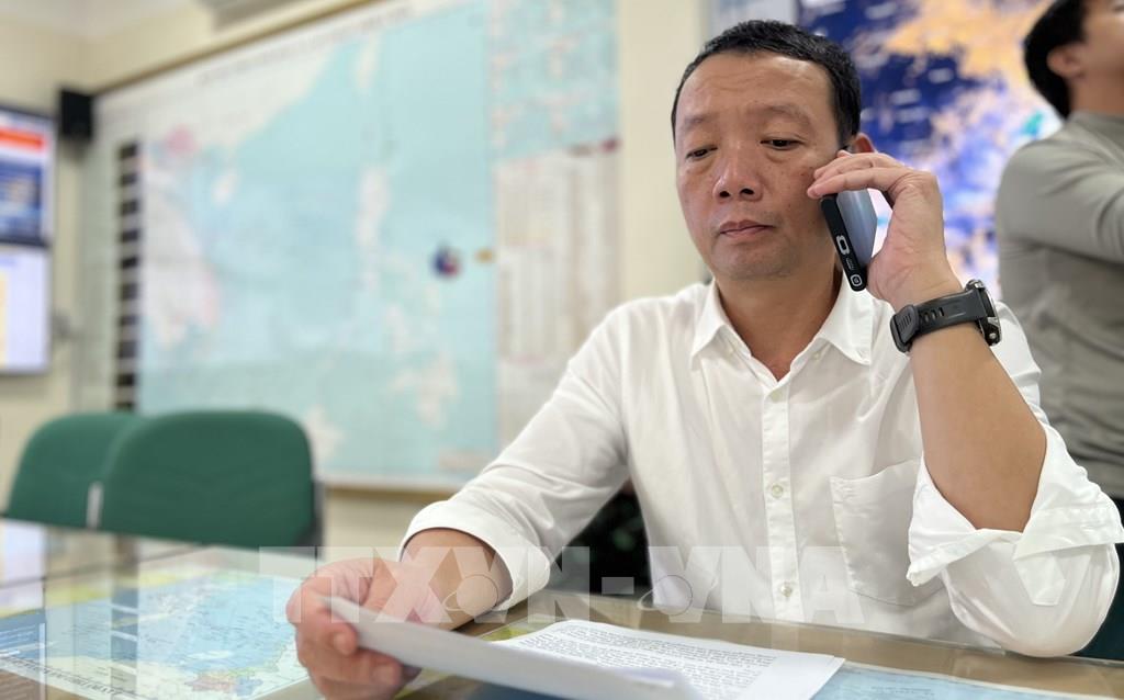 Chủ tịch UBND thành phố Huế Phan Thiên Định điều hành công tác cứu hộ cứu nạn, phòng chống thiên tai. Ảnh: Văn Dũng-TTXVN