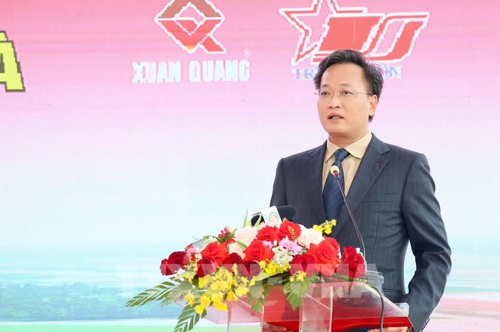Ủy viên Trung ương Đảng, Bí thư Tỉnh ủy Hưng Yên Nguyễn Hữu Nghĩa phát biểu tại lễ khởi công. Ảnh: Thế Duyệt - TTXVN