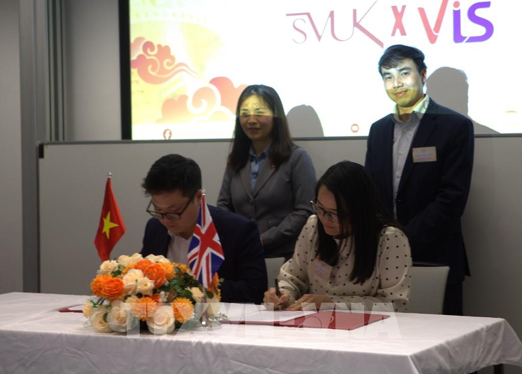 Đại diện của SVUK và VIS ký Biên bản Ghi nhớ hợp tác. Ảnh: TTXVN phát
