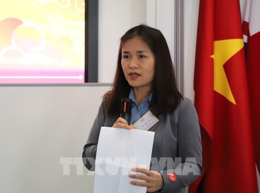 Bà Đào Thị Hồng - Bí thư Thứ nhất phụ trách Giáo dục, Đại sứ quán Việt Nam tại Anh, phát biểu tại Hội thảo Học thuật Sinh viên: “Việt Nam 2045”. Ảnh: Hữu Tiến - PV TTXVN tại Anh