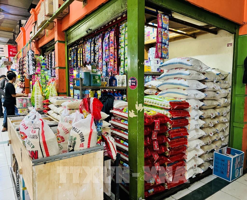 Một cửa hàng gạo tại chợ truyền thống ở Jakarta. Ảnh: Đỗ Quyên - PV TTXVN tại Indonesia