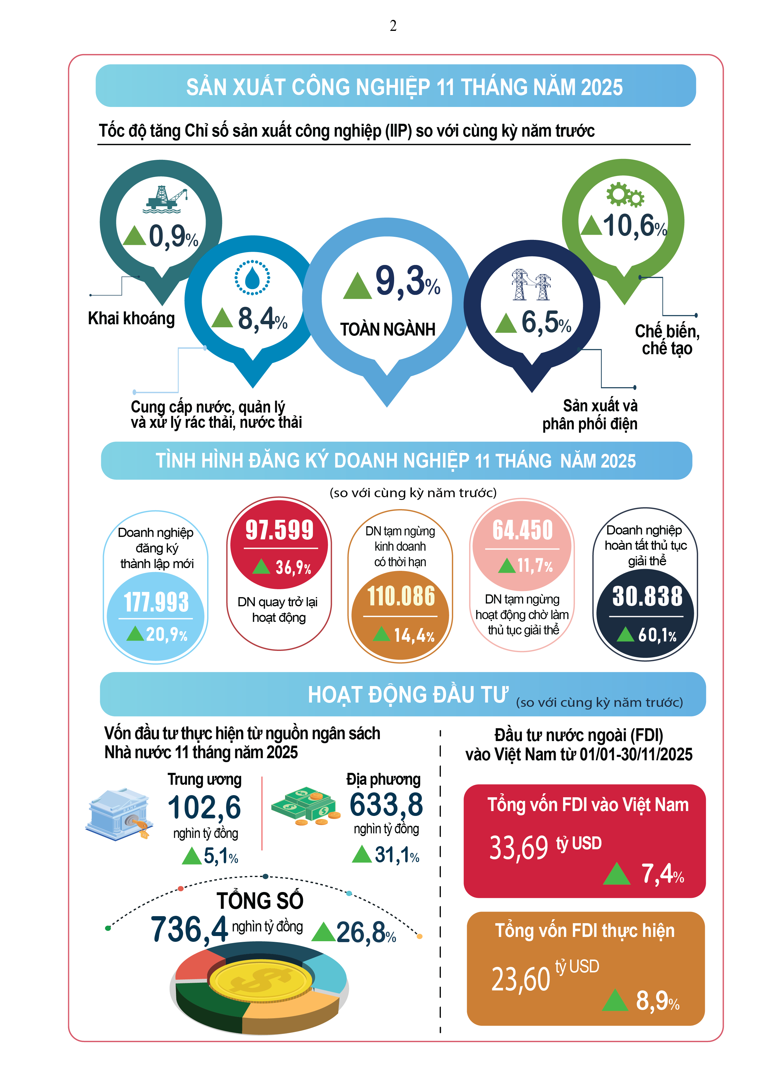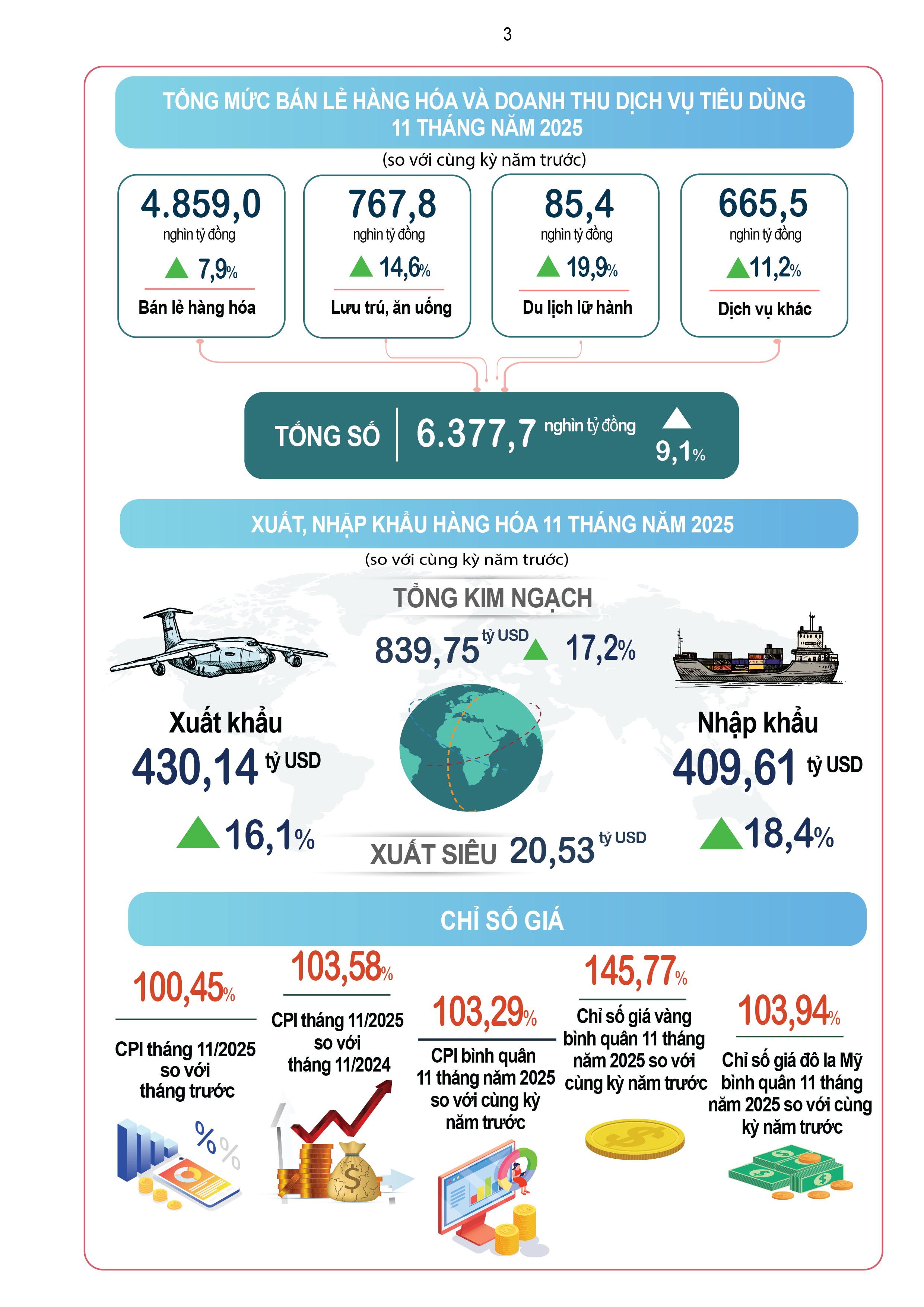 Chỉ số PMI (Chỉ số nhà quản trị mua hàng) trong tháng 11/2025 đạt 53,8 điểm, thấp hơn mức 54,5 điểm của tháng 10/2025 nhưng vẫn nằm vững trên ngưỡng 50 điểm.