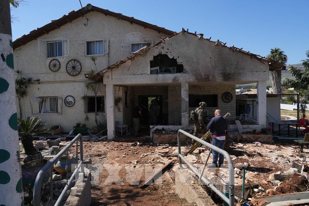 Ngôi nhà bị hư hại sau một vụ tấn công tại Moshav Kfar Yuval, Israel, ngày 3/3/2026. Ảnh: THX/TTXVN