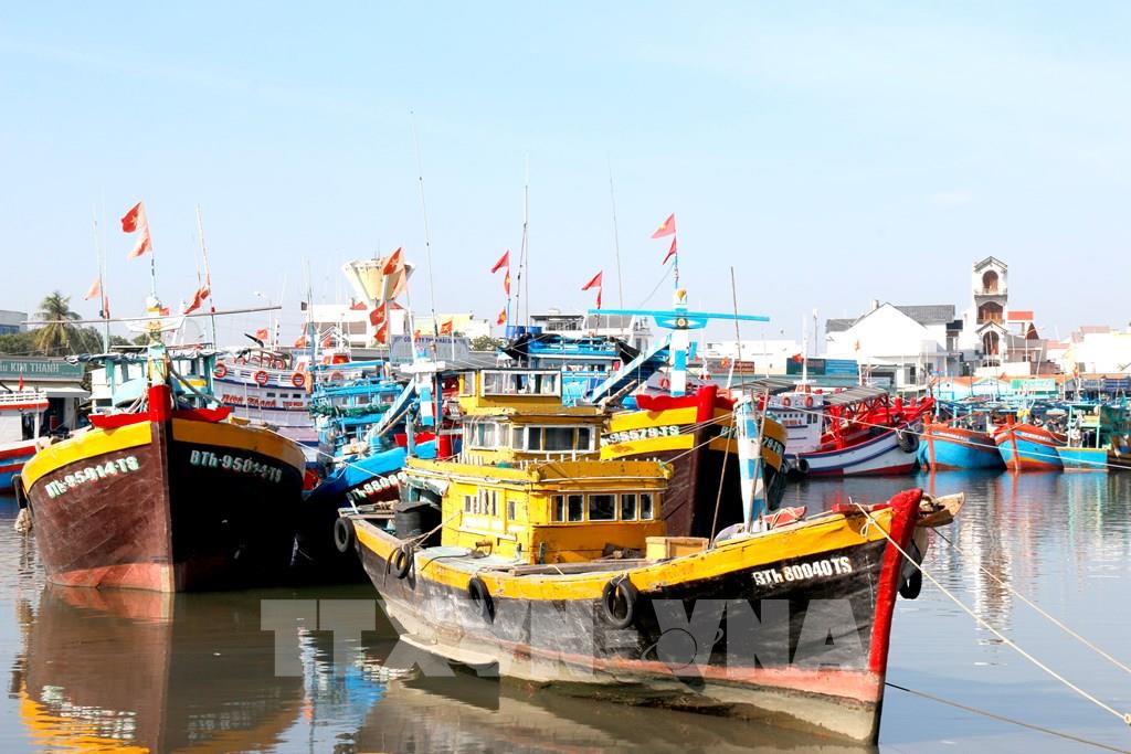 Tàu cá neo đậu trên sông Cà Ty, phường Phan Thiết (Lâm Đồng). Ảnh: Nguyễn Thanh - TTXVN