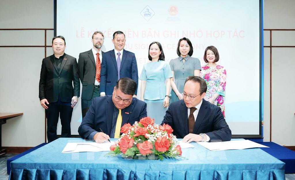 Đại diện Central Retail Việt Nam và Lotte Plaza Market ký kết thoả thuận hợp tác phân phối hàng hoá tại sự kiện. Ảnh: Xuân Anh - TTXVN