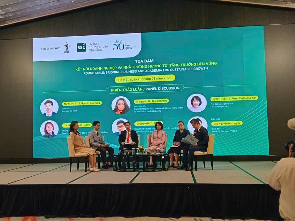 Phát biểu tại tọa đàm, Phó Chủ tịch Ủy ban Chứng khoán Nhà nước Hà Duy Tùng cho biết, phát triển bền vững và các tiêu chuẩn ESG đang được tích hợp ngày càng sâu vào chiến lược đầu tư và sản xuất kinh doanh, đặc biệt trong lĩnh vực tài chính và thị trường vốn. Nhà đầu tư ngày càng coi trọng yếu tố bền vững khi đánh giá và lựa chọn cơ hội đầu tư, kéo theo yêu cầu minh bạch thông tin và quản trị công ty theo hướng ESG ngày càng gia tăng.Ủy ban Chứng khoán Nhà nước đã triển khai đồng bộ nhiều giải pháp phát triển thị trường vốn theo hướng bền vững; trong đó, khung khổ pháp lý, công bố thông tin và quản trị công ty tiếp tục được hoàn thiện, đặc biệt là các yêu cầu minh bạch thông tin liên quan đến phát triển bền vững. Song song đó, việc thúc đẩy áp dụng thông lệ quản trị công ty tốt cũng góp phần nâng cao chất lượng thị trường, hướng tới mục tiêu nâng hạng thị trường chứng khoán Việt Nam.