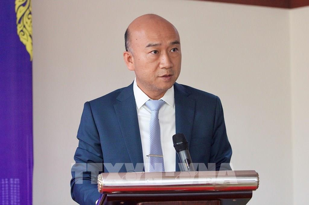 Tổng Lãnh sự Việt Nam tại tỉnh Battambang Trần Tuấn Anh phát biểu tại tọa đàm. Ảnh: Quang Anh – PV TTXVN tại Campuchia.