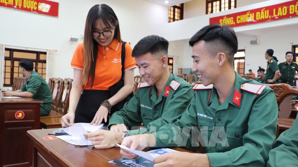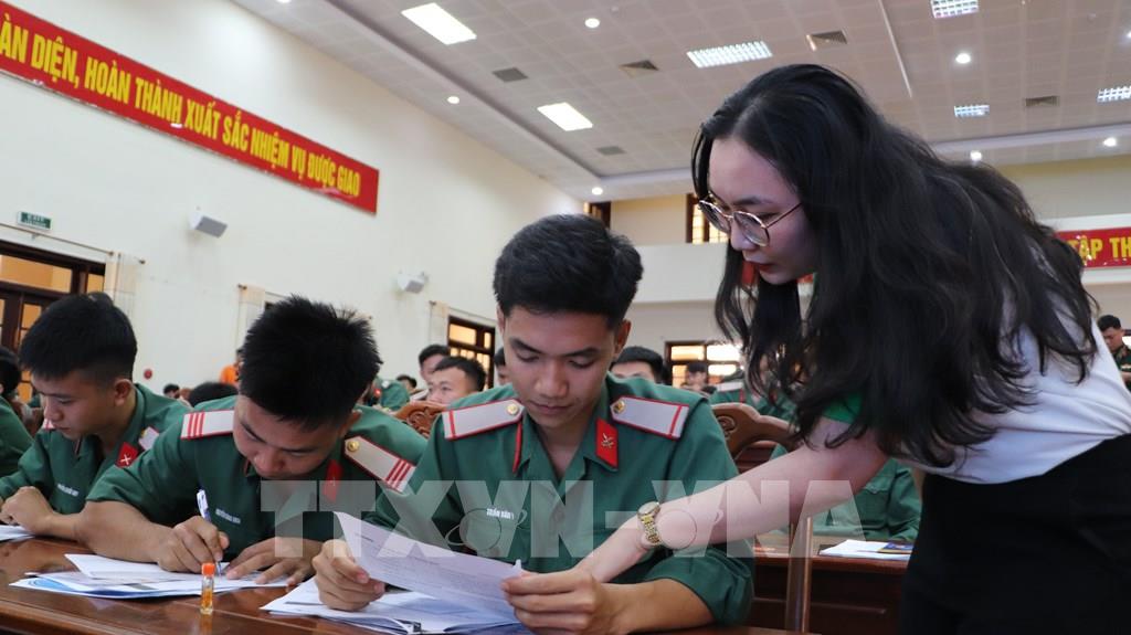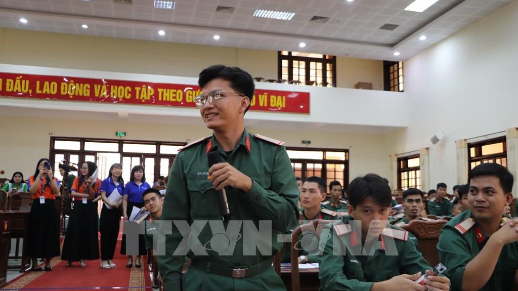 Quân nhân nêu thắc mắc về học nghề sau xuất ngũ. Ảnh: Hồng Thái - TTXVN