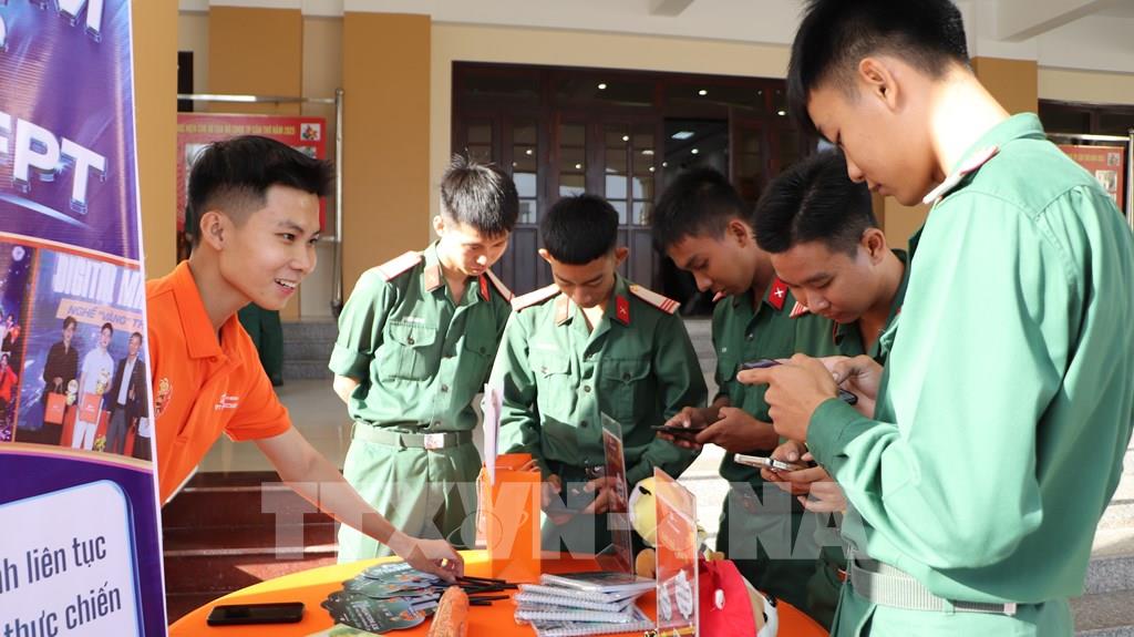 Quân nhân tìm hiểu thông tin nghề nghiệp và việc làm. Ảnh: Hồng Thái - TTXVN