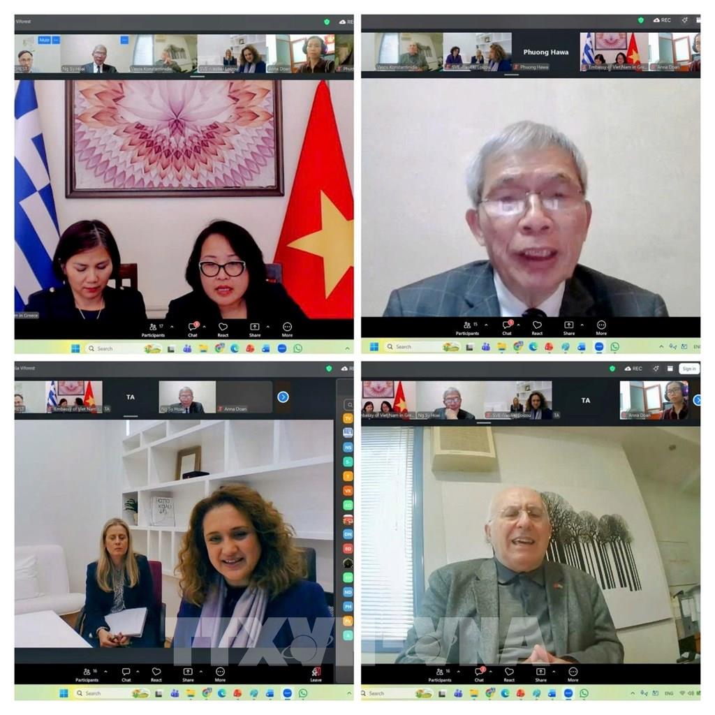 Cuộc họp trực tuyến kết nối Hiệp hội, doanh nghiệp Việt Nam – Hy Lạp trong lĩnh vực gỗ. Ảnh: TTXVN phát