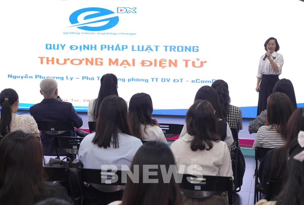Bà Nguyễn Phương Ly, Phó Trưởng phòng Đào tạo eComDx, Cục TMĐT&KTS Bộ Công thương trao đổi các vấn đề pháp lí Thương mại điện tử. Ảnh: Thanh Giang/BNEWS/TTXVN