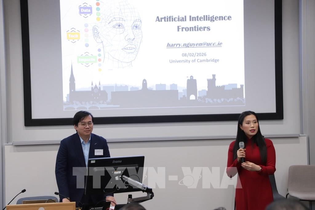 Phó Giáo sư, Tiến sĩ Harry Nguyen, Đại học Cork (Ireland) trình bày bài nghiên cứu tại Hội thảo về trí tuệ nhân tạo (AI) trong khuôn khổ AGM 2026 của VIS. Ảnh: Phong Hà - PV TTXVN tại Anh