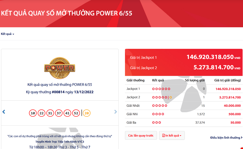 - Kết quả Vietlott Power 6/55