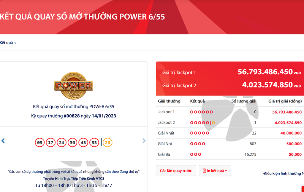- Kết quả Vietlott Power 6/55