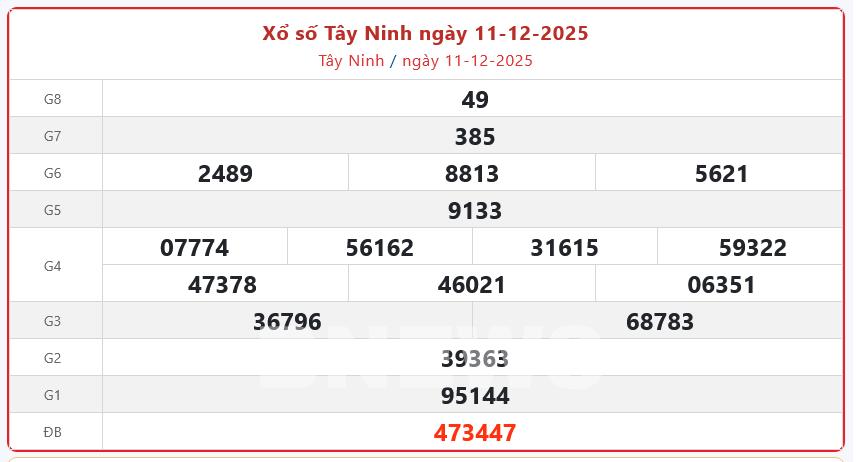Bnews. XSTN 11/12. Kết quả xổ số hôm nay ngày 11/12. XSTN Thứ Năm. Trực tiếp KQXSTN ngày 11/12. Kết quả xổ số Tây Ninh hôm nay ngày 11/12/2025. Kết quả xổ số Tây Ninh Thứ Năm ngày 11/12/2025.