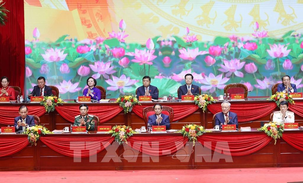 Thủ tướng Phạm Minh Chính khẳng định, nhờ sự vào cuộc quyết liệt của cả hệ thống chính trị, cộng đồng doanh nghiệp, Nhân dân cả nước dưới sự lãnh đạo của Đảng và sự giúp đỡ của bạn bè quốc tế, nước ta đã đạt được những thành tựu quan trọng, toàn diện, nổi bật trên tất cả các lĩnh vực; với kết quả năm sau tốt hơn năm trước và nhiệm kỳ này tốt hơn nhiệm kỳ trước trên hầu hết các lĩnh vực; tạo đà cải cách, đổi mới; tạo lực phát triển nhanh và bền vững; tạo khí thế sôi động trong toàn xã hội và góp phần tạo thêm niềm tin vững chắc trong Nhân dân vào Đảng Cộng sản Việt Nam.Trên cơ sở báo cáo nhiệm kỳ 2021-2025 trong các văn kiện Đại hội, Thủ tướng Chính phủ đề nghị các đồng chí tập trung nghiên cứu, thảo luận, đánh giá về những thành tựu đạt được, những hạn chế, yếu kém và nguyên nhân. Trong đó, cần phân tích rõ thực trạng tình hình có gì mới nổi lên, nguyên nhân khách quan, chủ quan. Những thành tích đạt được phải chăng là sự lãnh đạo, chỉ đạo toàn diện của Ban Chấp hành Trung ương, mà thường xuyên, trực tiếp là Bộ Chính trị, Ban Bí thư, đồng chí Tổng Bí thư; sự phối hợp chặt chẽ, hiệu quả giữa các cơ quan trong hệ thống chính cũng như bài học kinh nghiệm rút ra...* Đột phá, bước vào kỷ nguyên mớiTheo Thủ tướng Phạm Minh Chính, bước vào nhiệm kỳ 2025-2030, tình hình thế giới dự báo tiếp tục diễn biến phức tạp, khó lường, tiềm ẩn nhiều rủi ro; nhìn chung khó khăn, thách thức nhiều hơn thời cơ, thuận lợi. Đại hội lần thứ XIV của Đảng được Trung ương xác định là khởi nguồn của kỷ nguyên vươn mình phát triển giàu mạnh, phồn vinh, văn minh, hạnh phúc vững bước tiến lên chủ nghĩa xã hội. Tổng Bí thư Tô Lâm đã nhấn mạnh, chúng ta đang đứng trước thời điểm lịch sử, cơ hội lịch sử để phát triển nhanh, bền vững, song cũng đứng trước yêu cầu rất cao về sự đột phá mang tính cách mạng, khoa học, kịp thời tháo gỡ các điểm nghẽn, nút thắt trong mọi mặt của đời sống xã hội.Quán triệt tinh thần đó, Đại hội đại biểu Đảng bộ Chính phủ lần này đưa ra phương châm hành động: “Đoàn kết, kỷ cương - Dân chủ, đổi mới - Đột phá, phát triển - Gần dân, vì dân”. Trong đó, “Đoàn kết, kỷ cương” là cơ sở, nền tảng - “Dân chủ, đổi mới” là nguyên tắc, phương pháp - “Đột phá, phát triển” là mục tiêu, yêu cầu - “Gần dân, vì dân” là tư tưởng dân là gốc, sức mạnh bắt nguồn từ Nhân dân và với tinh thần “Đảng đã chỉ đạo, Chính phủ thống nhất, Quốc hội đồng tình, Nhân dân ủng hộ, Tổ quốc mong đợi, bạn bè giúp đỡ; thì chì bàn làm, không bàn lùi”.Thủ tướng Phạm Minh Chính đề nghị Đại hội đi sâu phân tích, dự báo bối cảnh tình hình và cho thêm ý kiến về phương hướng, nhiệm vụ, giải pháp trọng tâm trong nhiệm kỳ tới. Trong đó, câu hỏi lớn đặt ra là phải làm thế nào để xây dựng Đảng bộ Chính phủ trong sạch vững mạnh, đoàn kết, gương mẫu đi đầu trong khoa học công nghệ, đổi mới sáng tạo, chuyển đổi số; đồng thời huy động được mọi nguồn lực của đất nước để tăng tốc đột phá, phát triển đất nước trong bối cảnh mới.