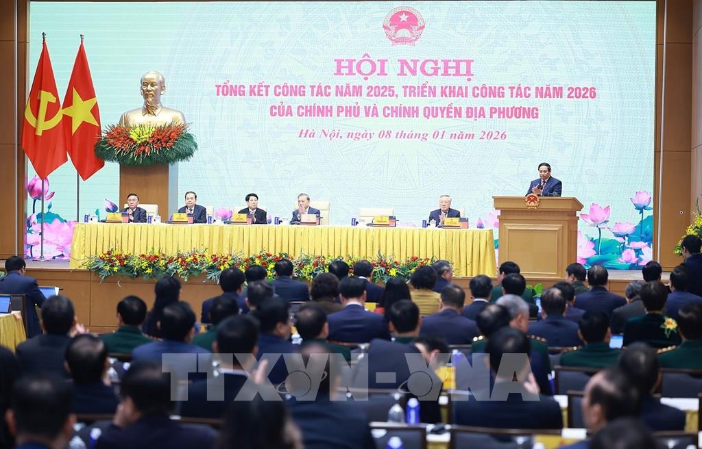 Thủ tướng Phạm Minh Chính khai mạc Hội nghị tổng kết công tác năm 2025, triển khai công tác năm 2026 của Chính phủ và chính quyền địa phương. Ảnh: Dương Giang-TTXVN
