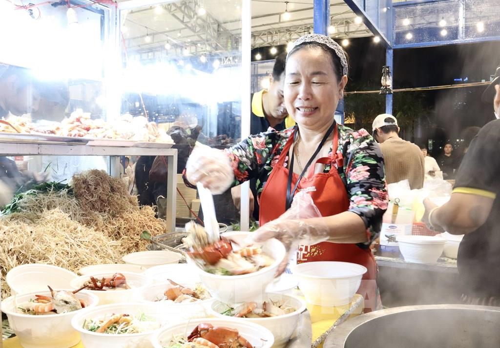 Gian hàng cua chế biến tại “Lễ hội Ẩm thực – Ngày hội Cua Cà Mau” thu hút rất đông thực khách đến thưởng thức. Ảnh: Xuân Anh -TTXVN