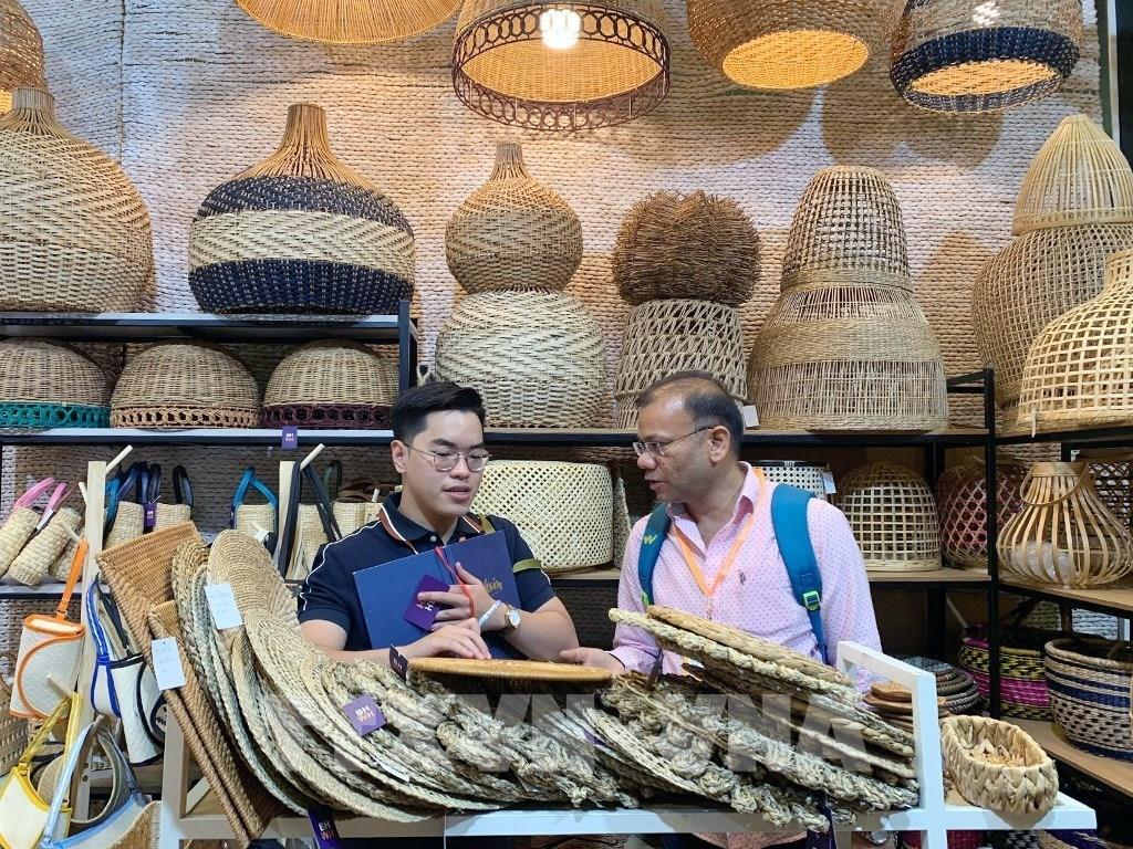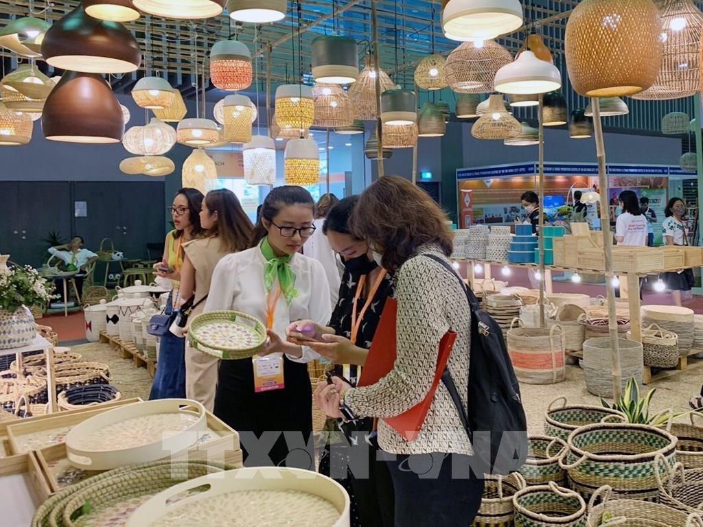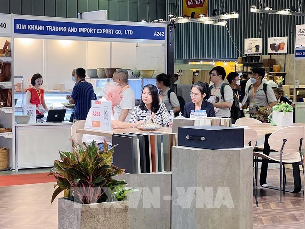 Các gian hàng tại Global Sourcing Fair Việt Nam 2023 thu hút nhà mua hàng tìm kiếm sản phẩm, nguồn cung mới. Ảnh: Mỹ Phương - TTXVN