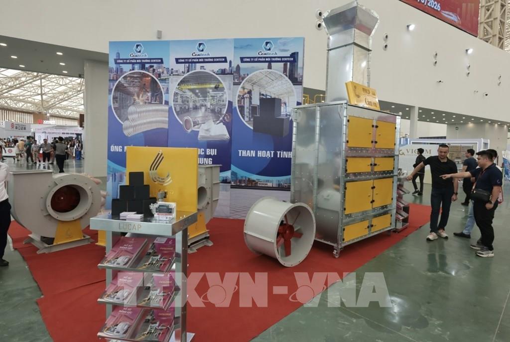 Gian trưng bày hệ thống xử lý khí thải. Ảnh: Trần Việt - TTXVN