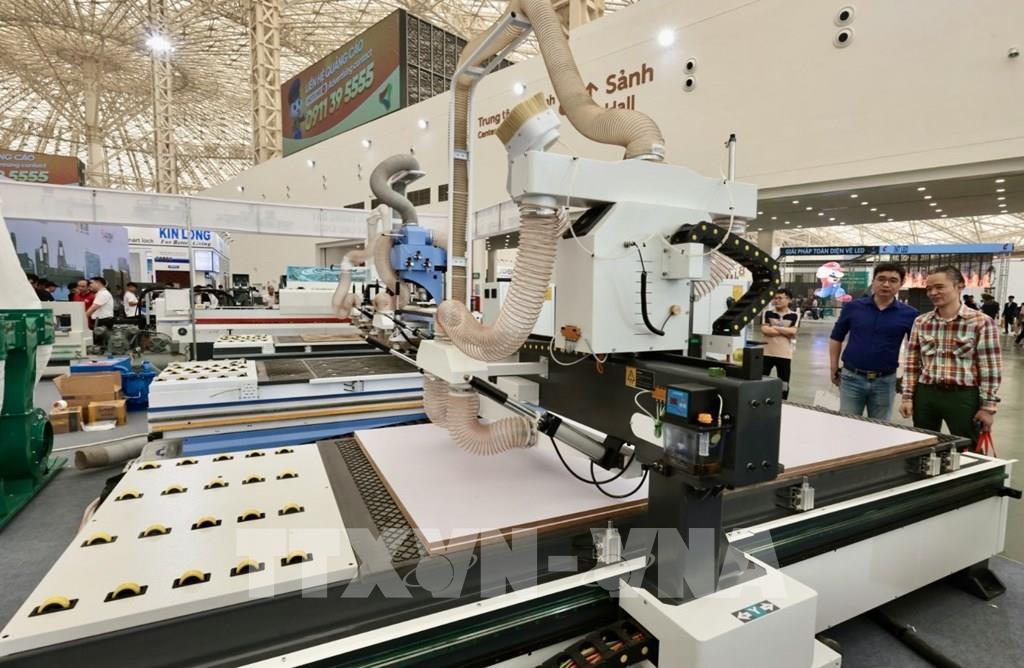 Gian trưng bày máy gia công cơ khí tự động hóa (CNC). Ảnh: Trần Việt - TTXVN
