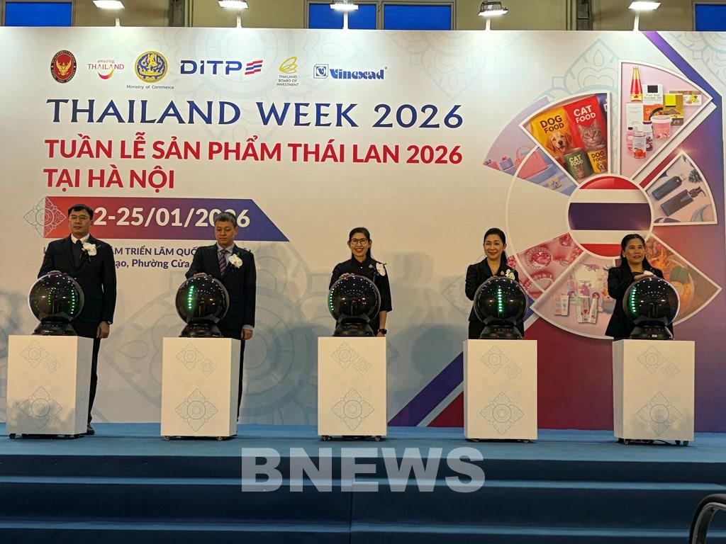 Sáng 22/1, tại Trung tâm Hội nghị và Triển lãm Quốc tế 91 Trần Hưng Đạo, phường Hoàn Kiếm, Hà Nội đã khai mạc Tuần lễ sản phẩm Thái Lan 2026 “Thailand Week 2026”. Sự kiện do Cục Xúc tiến Thương mại Quốc tế (DITP), Bộ Thương mại, Chính phủ Hoàng gia Thái Lan, Văn phòng Thương mại, Đại sứ quán Vương quốc Thái Lan tại Hà Nội phối hợp với Công ty Vinexad tổ chức.