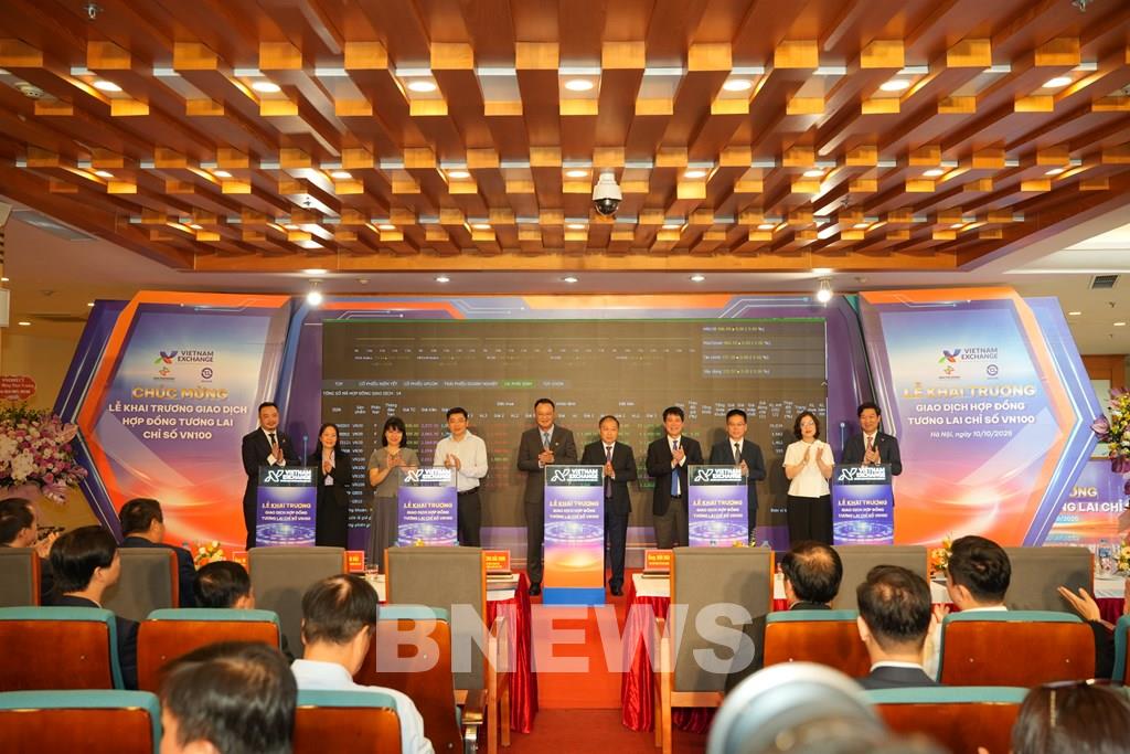 Ngày 10/10, Sở Giao dịch Chứng khoán Việt Nam (VNX) tổ chức Lễ khai trương giao dịch Hợp đồng tương lai chỉ số VN100 - đánh dấu bước phát triển quan trọng trong quá trình đa dạng hóa sản phẩm và mở rộng quy mô của thị trường chứng khoán phái sinh Việt Nam.