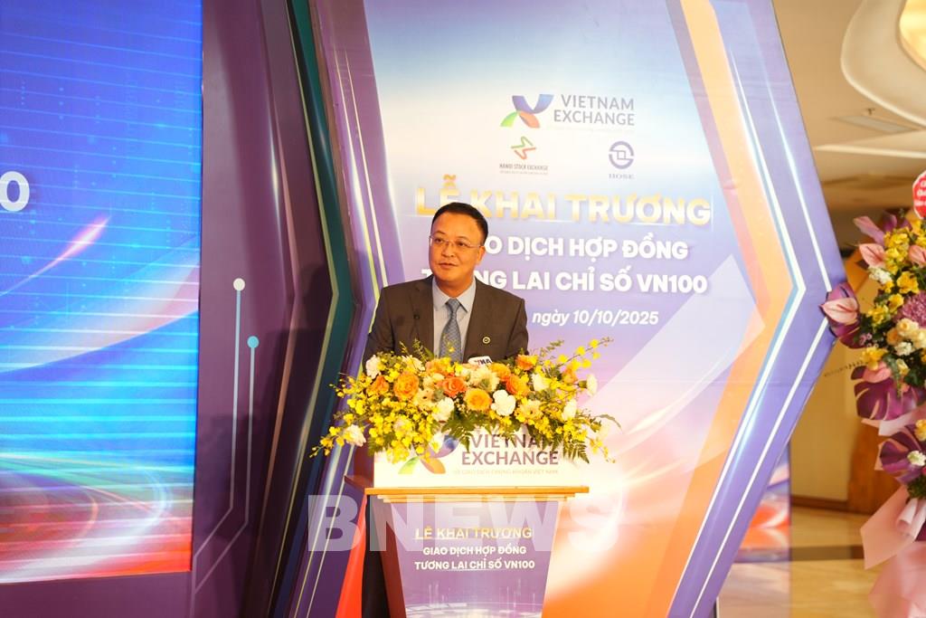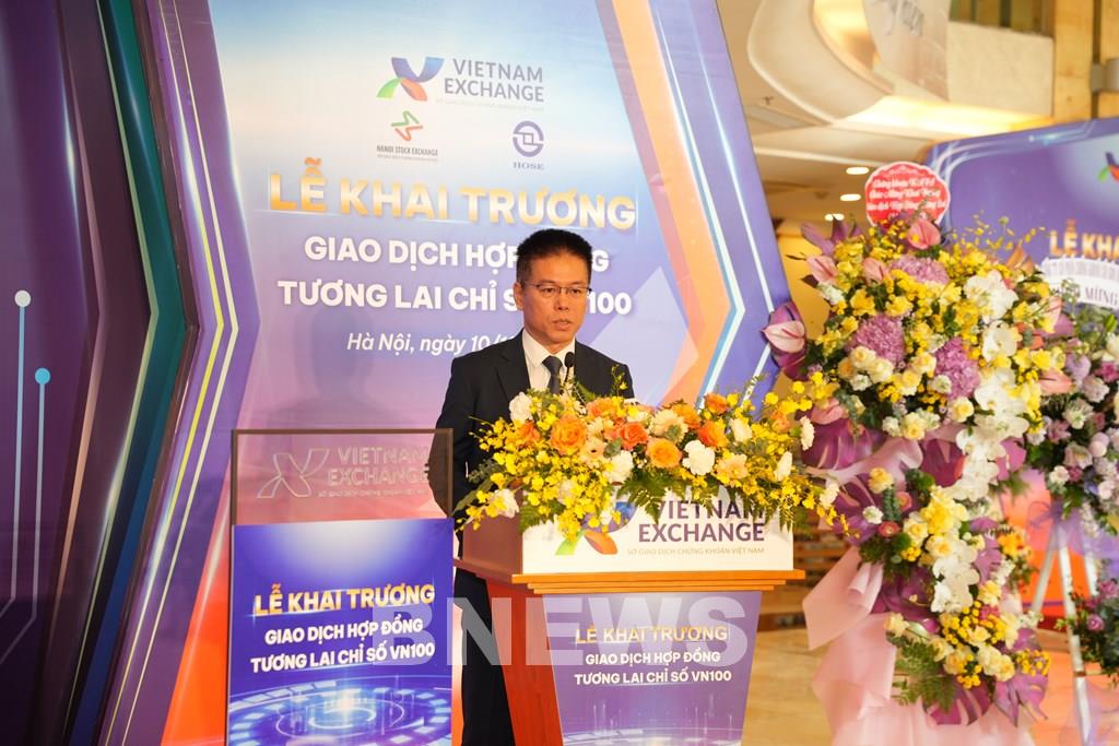 Phát biểu chỉ đạo tại buổi lễ, ông Bùi Hoàng Hải – Phó Chủ tịch Ủy ban Chứng khoán Nhà nước nhấn mạnh, việc đưa Hợp đồng tương lai VN100 vào giao dịch nằm trong lộ trình triển khai Chiến lược Phát triển thị trường chứng khoán đến năm 2030, đồng thời phù hợp với xu hướng phát triển sản phẩm phái sinh tại các thị trường quốc tế.