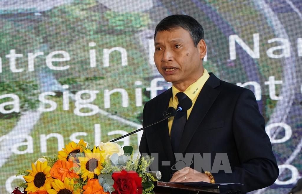 Ông Hồ Kỳ Minh, Phó Chủ tịch Thường trực UBND thành phố Đà Nẵng, Chủ tịch Cơ quan điều hành IFC Đà Nẵng, phát biểu tại buổi lễ. Ảnh: Quốc Dũng - TTXVN