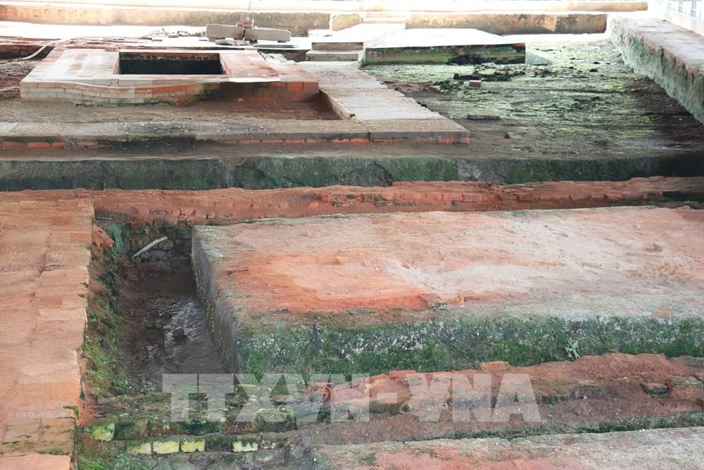 Hiện trạng khai quật tại di chỉ khảo cổ Gò Thành, xã Tân Thuận Bình, tỉnh Đồng Tháp. Ảnh: Hữu Chí – TTXVN